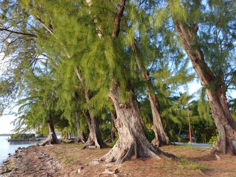 Neben Palmen und Pandanuss-/Schraubenbäumen finden sich hier, also in Polynesien auch Eisenbäume und wunderschöne Kasuarinen. Die Blätter/Nadeln sehen aus, wie Schachtelhalm und bilden kleine Zapfen, die auch als Deko benutzt werden.