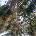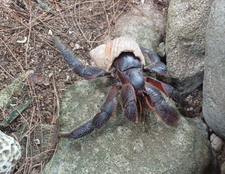 Vor meiner Terrasse und in den Palmen + Bäumen daneben tummeln sich Hähne (= Weckpersonal😉), Hühner, Küken und imposante, faustgroße Einsiedlerkrebse.