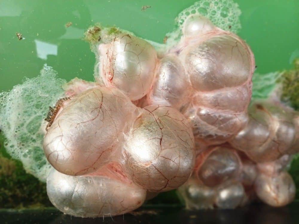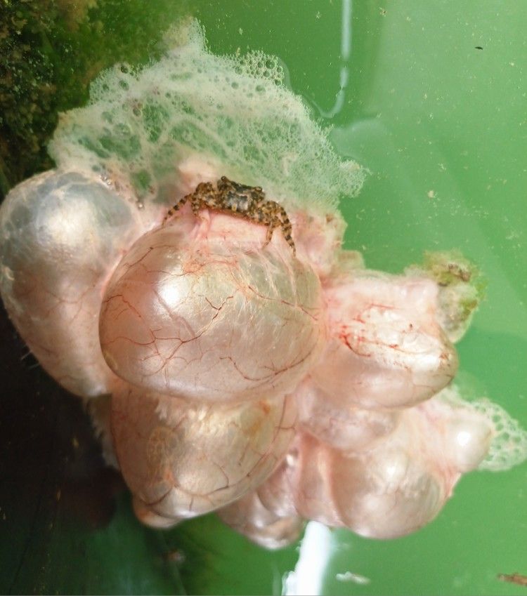 Es handelt sich hier um aufgedunsene Fisch-Därme…oder igendwas aus dem Inneren, was jemand wohl ins Hafenbecken geworfen hat und was dann aufgegast ist. Darauf hatte es sich dann eine kleine Krabbe bequem gemacht.