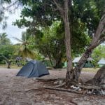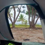 Letztes Mal musste ich zur Not, dieses Mal habe ich mir extra das Zelt gebucht. Und wieder mit Blick auf die rauhe Meeresseite des schmalen Atolls.