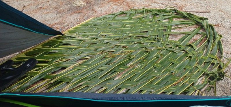 habe ich erstmal etwas „sinnvolles“ gemacht, mir eine Machete geschnappt und mir mit Palmblättern eine Fußmatte für mein Zelt gebastelt. War ja schließlich im Survivalcamp 😜. Nicht perfekt aber funktioniert.