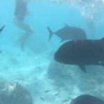 So haben wir mit großen Meeresschildkröten geschnorchelt, Stachelrochen in einer Riffpassage, beobachtet, sind mit riesigen schwarzen Stachelmarkrelen geschwommen,