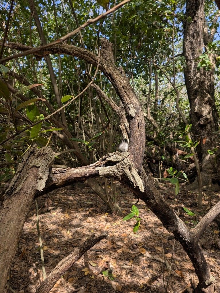 Das Besondere beim Nistverhalten dieser Schwalbe ist, dass sie ihr Ei einfach auf einen Ast legt, das Küken dort ausbrütet und dieses dann dort einach hocken bleibt. Sah schon sehr schwindelerregend aus, wie sich der Elternvogel dann auch noch auf das Kücken drauf hockt.