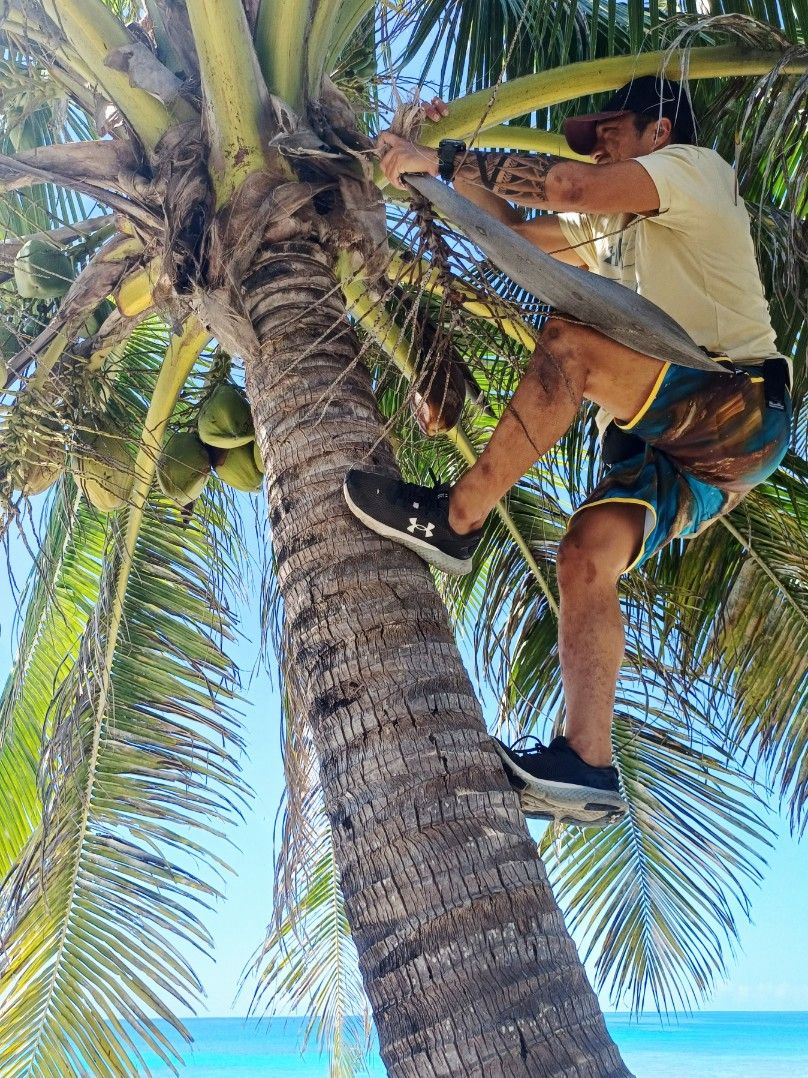 und vorab hat er uns direkt noch ein paar Kokosnüsse zum Trinken geflückt.