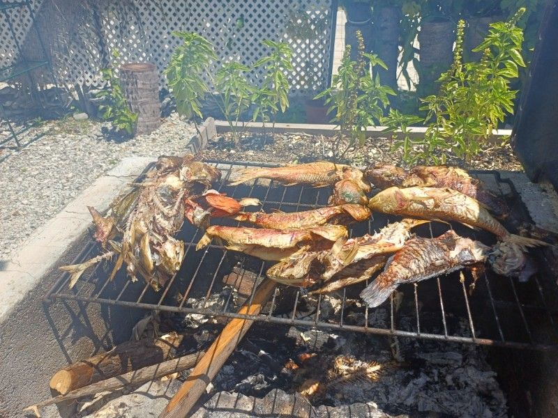 Ich, „Madame“ 😅, wurde dann auch direkt mal von ihm, noch nem Kumpel und dem Nachbarn zum Mittagessen – gegrillter Fisch – eingeladen