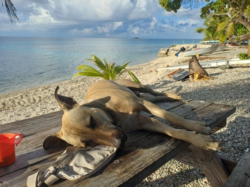 Dennoch würde ich hier nicht nochmal absteigen wollen, denn die Pächterin kümmert sich nicht wirklich. Ob Klopapier, Mückenprävention, Sauberkeit oder Trinkwasser. Ich bin ja nicht sonderlich empfindlich aber wenn die Hunde auf den Tischen schlafen, in der Küche an die Bänke oder Sonnenliege pinkeln oder unter die Palme kacken, find ich das schon recht ekelhaft. Und Zimmer neben dem Pumpengenerator ist auch nicht so optimal. Aber interessiert niemanden.