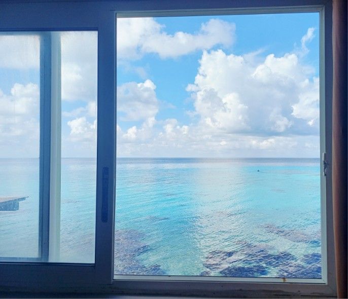 Weil gerade Nebensaison ist und keine anderen Gäste außer mir da sind, habe ich zu den gleichen Konditionen ein anderes Zimmer erhalten. Und zwar direkt am Wasser. 🥰. Ich könnte fast ne Arschbombe aus dem Fester machen. Aber nur fast.