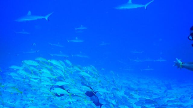 Das war einer der schönsten Tauchgänge in meiner bisherigen „Unterwasserkarriere“!!! Das Glück war uns hold, der Tauchguide hat den richtigen Strömungs- und Gezeitenmoment abgepasst, so dass sich rund 200-300 Haie dort eingefunden hatten 😳 😳 😳