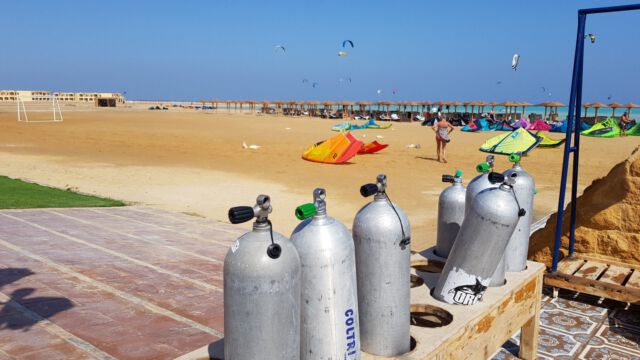 Nachdem ich gestern einen ganzen Tag lang Kiteunterricht genommen habe und abends totmüde ins Bett fiel, stand ich heute schon wieder um 5:45 Uhr (im Urlaub!! 🙂 ) pünktlich an der Tauchschule.