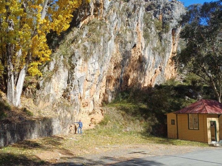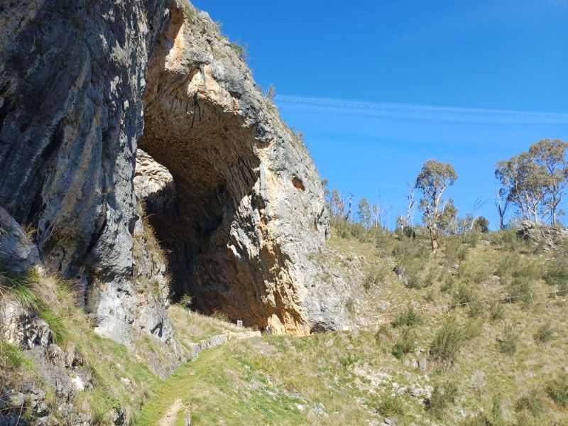 Nach einer langen Fahrt über rote Schotter-Sandpiste, durch atemberaubende Landschaften und einer Weite, die man auf Fotos gar nicht einfangen kann, quasi fast wie im Outback, kamen wir an den Höhlen an. Wildpferde hatten wir allerdings keine gesehen. 😪 Nur ehemals durch Buschfeuer abgebrannte Eukalyptus-Wälder, Felsen und riesige Bäume. Unterwegs wieder keine Menschenseele getroffen.